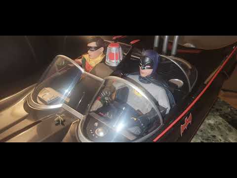 Mcfarlane's Batman 66 Batmobile Version 2. Is the ideal scale for all type of 8" scale Batman & Robin figures....Fits rather nicely. Thanks McFarlane !!!