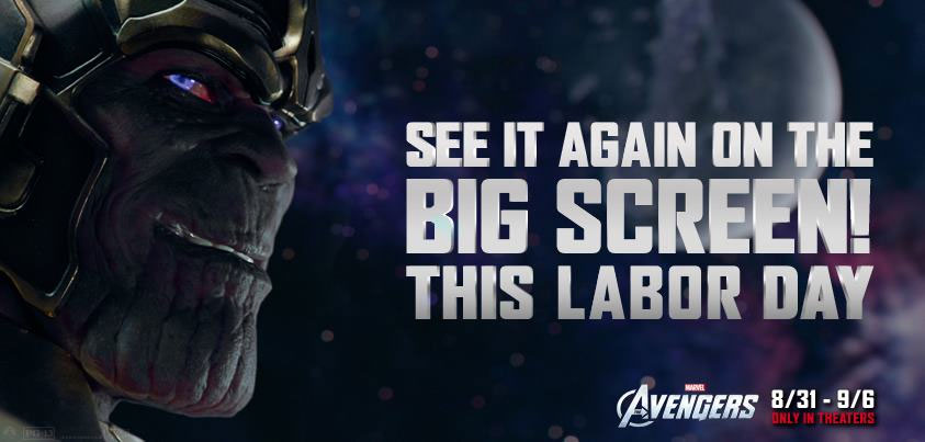 Miss The Avengers during its original 3-month theatrical run? Of course you didn't. That's why this Labor Day weekend, head out to the theaters to see it one (or 2....or 7) more times.