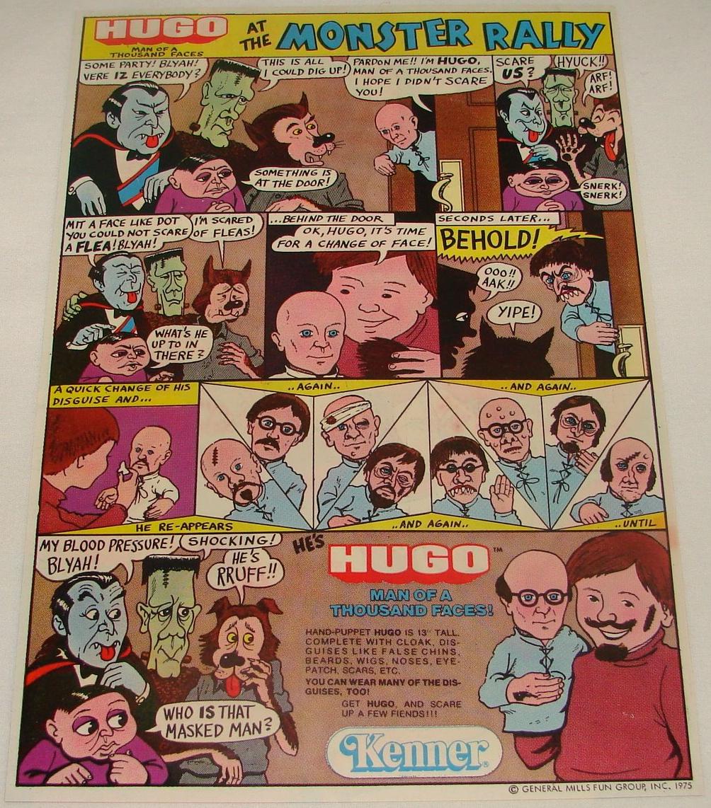 There is a Hugo commercial on YouTube however you're going to have to find it as part of a compilation of 70s commercials. I remember seeing it, along with the Vincent Price shrunken head maker ad, but I just don't remember where.