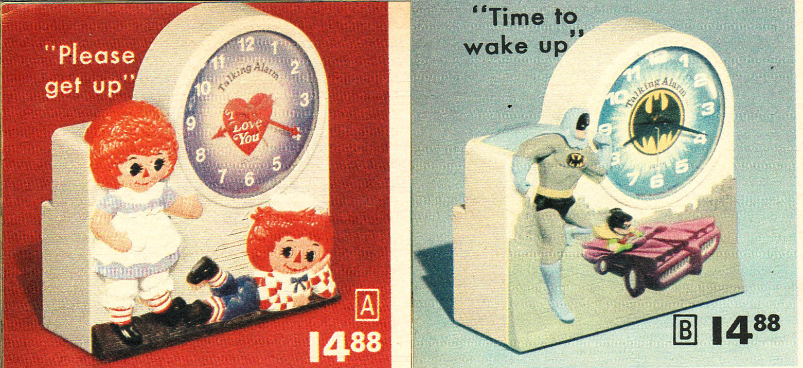 My sister and I had both the Raggedy Ann and Andy and the Batman clocks respectively. My grandmother bought them for us at some discount store on Long Island.