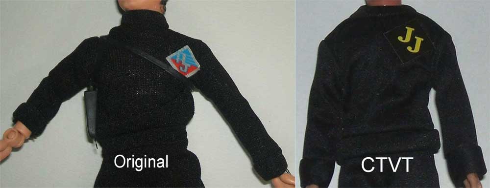 Secret Agents black shirt has been reproduced by CTVT for their Jet Jungle reproduction. The repro fits much bigger, has larger cuffs, and the waistband kind of bulges out instead of tucks under like the original. The turtleneck on the repro also lays flat compared to the original. The repro is made of a more modern, slicker material and is unmarked. The original shirt can also be foud on Dinah's friend Don.