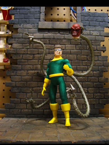 My first real custom was a Doctor Octopus. I used a Doc Mego body ,a Flatt head, craft foam for armor, real stainless steel tenicals, and I took a green suit form a Famous Covers