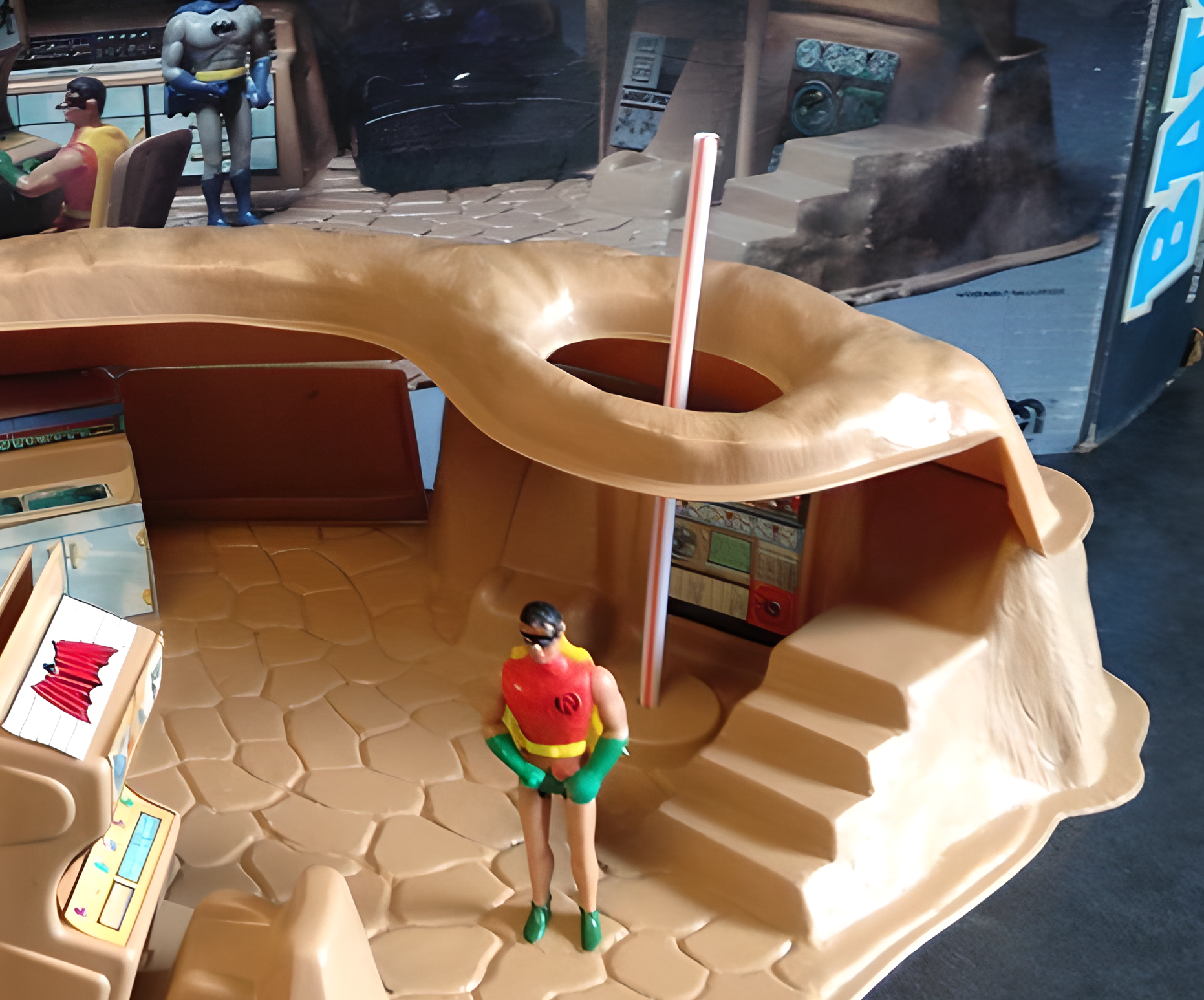 The Batcave is extremely fragile, and the moving parts, such as the doors (jail and cave), are usually broken. It was sold for two years (1980 to 1982) and was not offered in the 1982 catalogue.