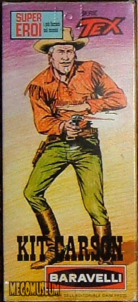 Cool Action Pose:The Kit Carson packaging is some of Mego’s finest work, like alot of foreign product it not only carries the Baravelli Logo but the Mego logo as well.