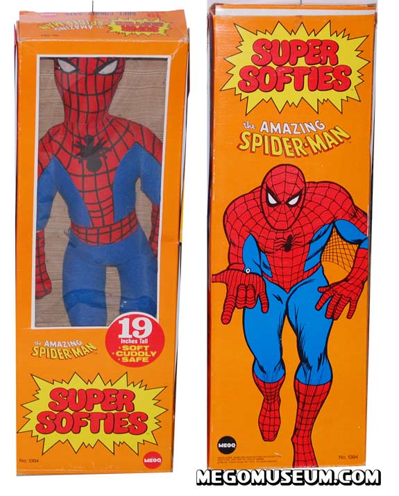 Regular 19" Mego Super Softie Spiderman MIB. Photo courtesy of Mark Huckabone.