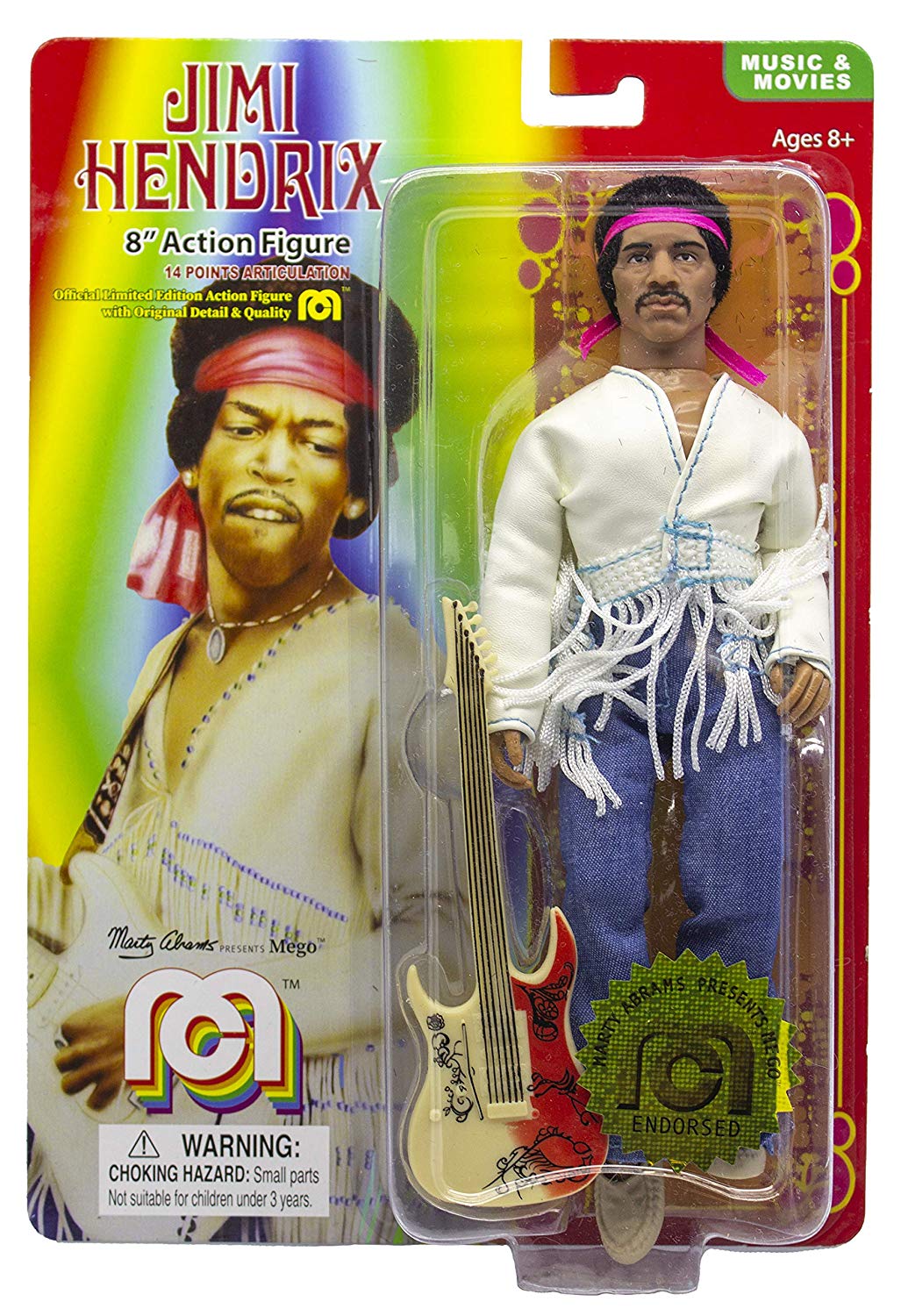 Music Icons: Jimi Hendrix (Flocked Amazon Exclusive) by palitoy • July 23, 2019 variation Mego Jimi Hendrix This version of Jimi Hendrix is exclusive to Amazon and features flocked hair and mustach. You can order him here while supplies last.