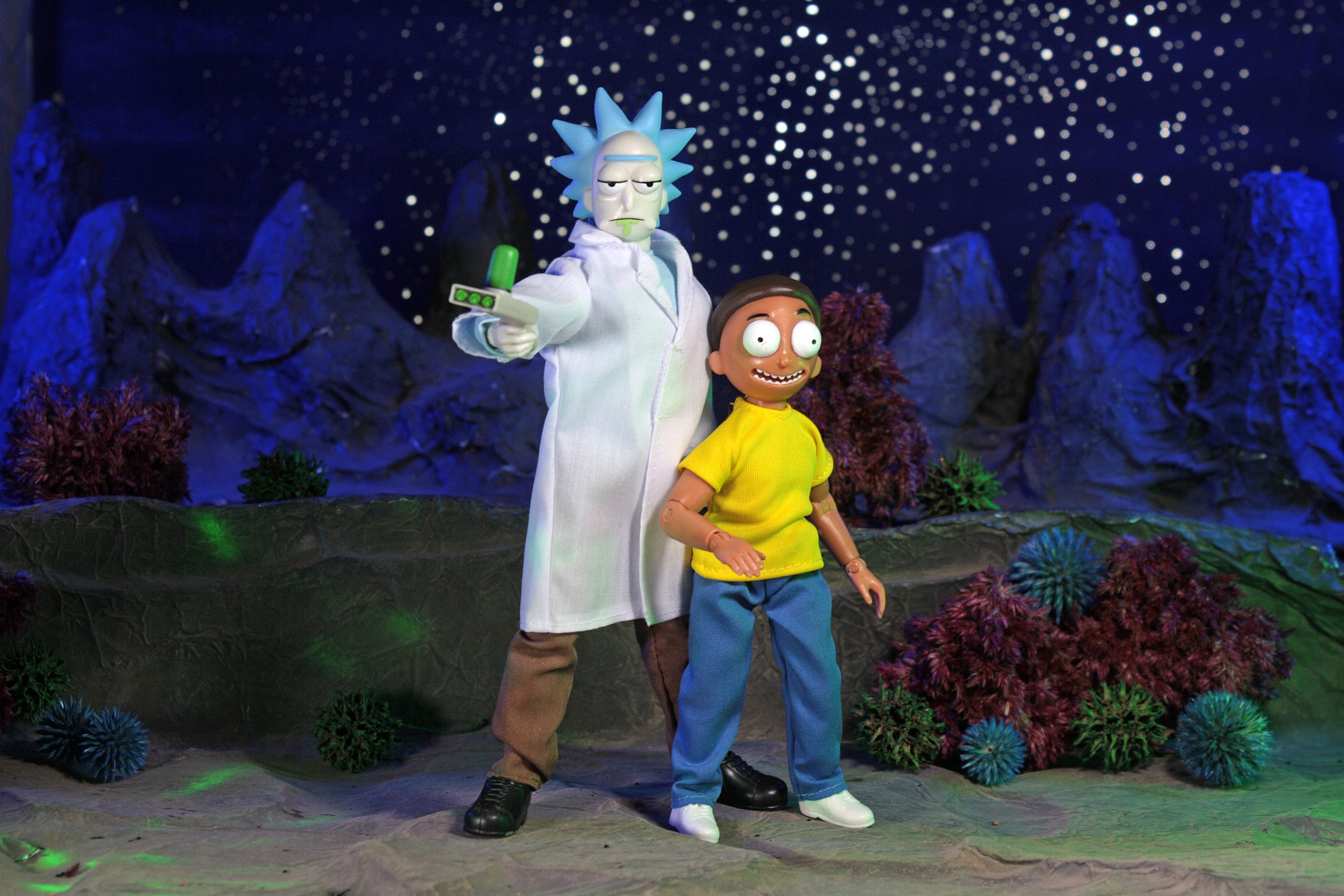 Museum Note: While Mego hired Andrew Covalt to sculpt the characters, the heads were not used due to scheduling constraints. The head sculpts were from a previous Rick and Morty toy project.