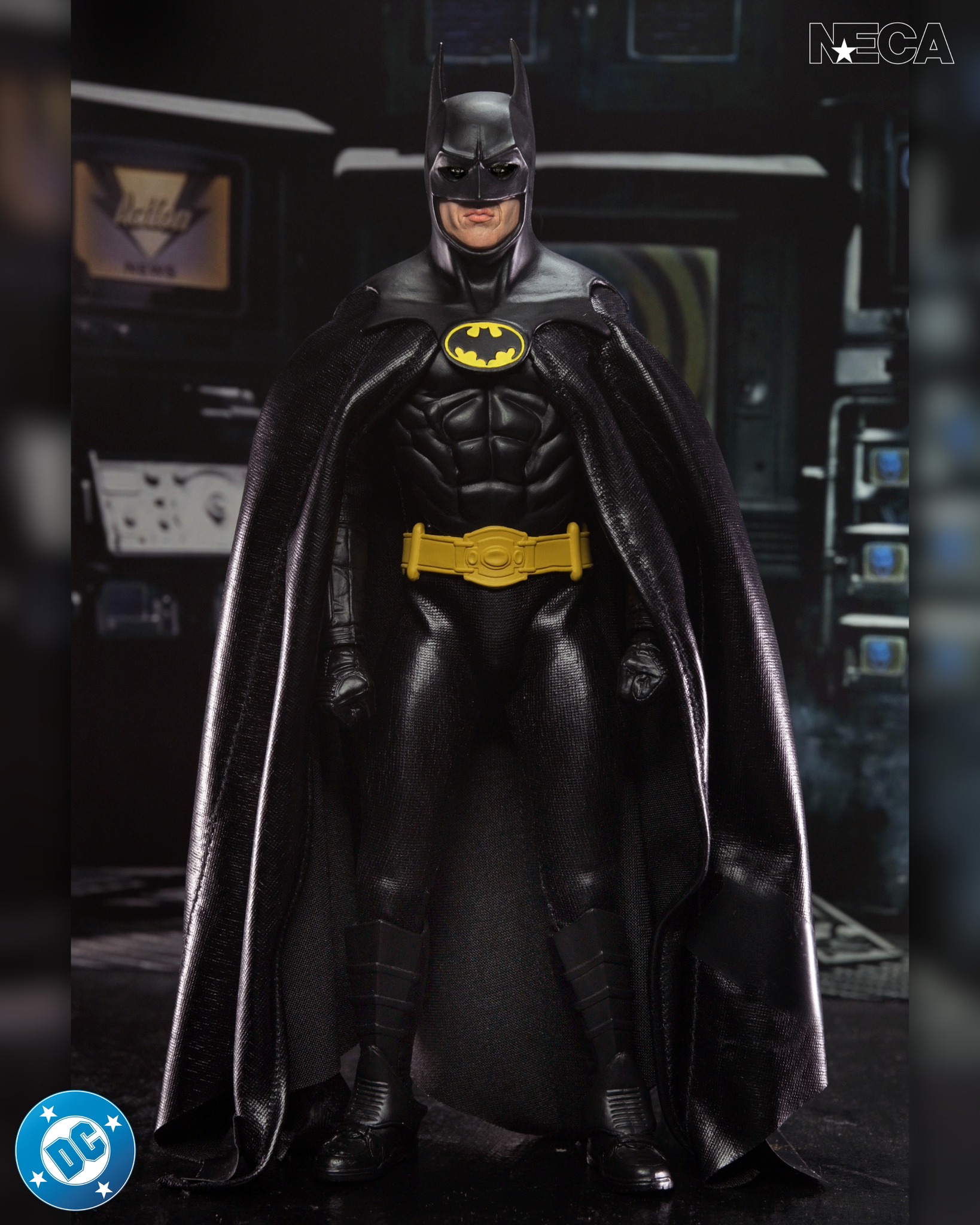 From the iconic 1989 Tim Burton film that defined Batman for a modern generation, NECA presents this clothed Batman action figure featuring the likeness of Michael Keaton. Cloaked in shadow and driven by vengeance, the Batman strikes fear into the hearts of Gotham City’s criminal elite. Once terrified by bats, and psychologically damaged from the murder of his parents, the wealthy Bruce Wayne channels that fear into his alter ego of Batman, donning the cape and cowl to protect the streets of Gotham from low life criminals and eccentric villains alike. As mob bosses like Carl Grissom rule the city with unchecked power, and the madman known only as The Joker spreads chaos like wildfire, Batman is the last line of defense between Gotham and total collapse. Paying homage to vintage toy lines, this Batman figure wears tailored soft goods clothing, including a poseable cape with wire. Accessories include interchangeable hands and iconic Batman gadgets such as his Batarang and grapnel launcher. This 8-inch scale figure comes in window box packaging with slipcover.