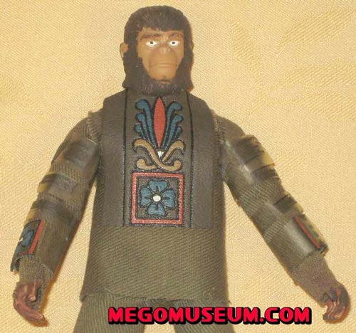 There is no absolute way to differentiate the figures, however, since both sets of Planet of the Apes figures were released on the Mego "Type 1" body - that is, the body which used metal joints, most prominent in the wrists -- AND on "Type 2" (plastic jointed) bodies. What does all this mean? Simply, a male Chimp on a Type 2 body is probably Galen, while a male Chimp on a Type 1 body is probably Cornelius, but it is impossible to be sure unless the figures are carded.