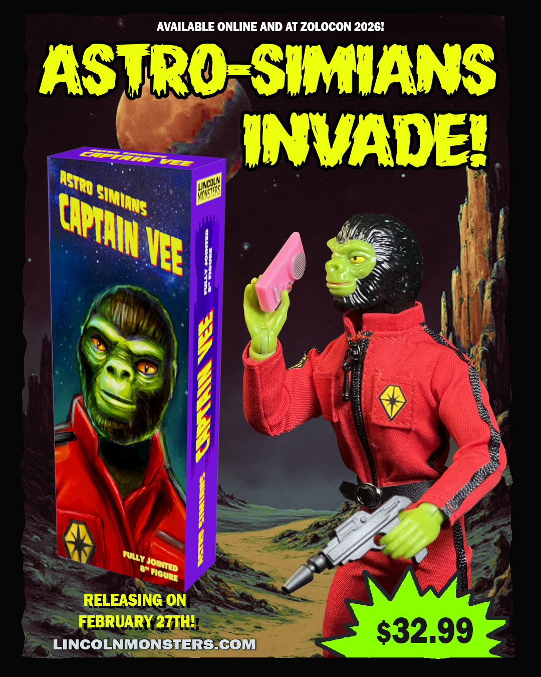 Captain Vee is not exclusive, it will make it’s debut at Zolocon 2025 but then will be available for purchase at LincolnMonsters.com